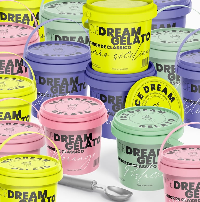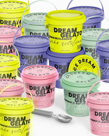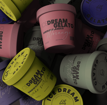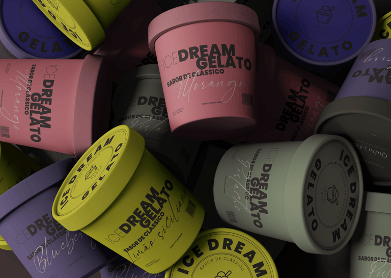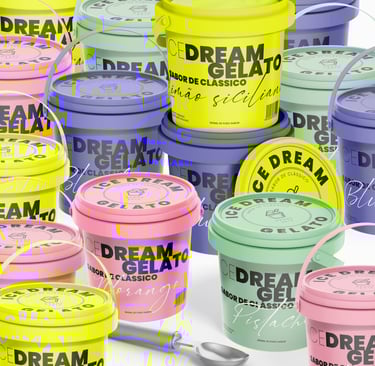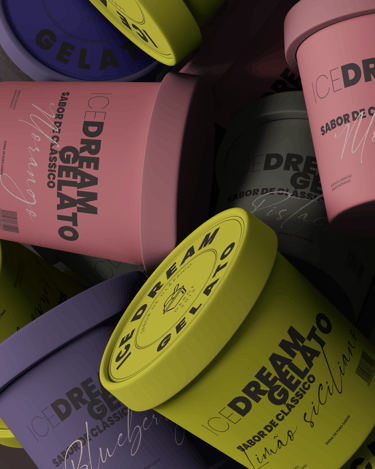 Reposicionar a marca IceDream no mercado como uma referência em gelatos artesanais premium, com um visual que transmitisse frescor, personalidade e desejo. A meta era criar uma linguagem moderna que conversasse com um público jovem e sofisticado, destacando cada sabor de forma única, mas mantendo uma identidade coesa.