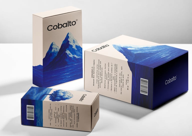 O projeto da Cobalto® demonstra como um produto de skincare pode se transformar em uma obra de arte visual. Unimos estratégia, design e sensibilidade estética para criar uma marca coesa, sofisticada e diferenciada.